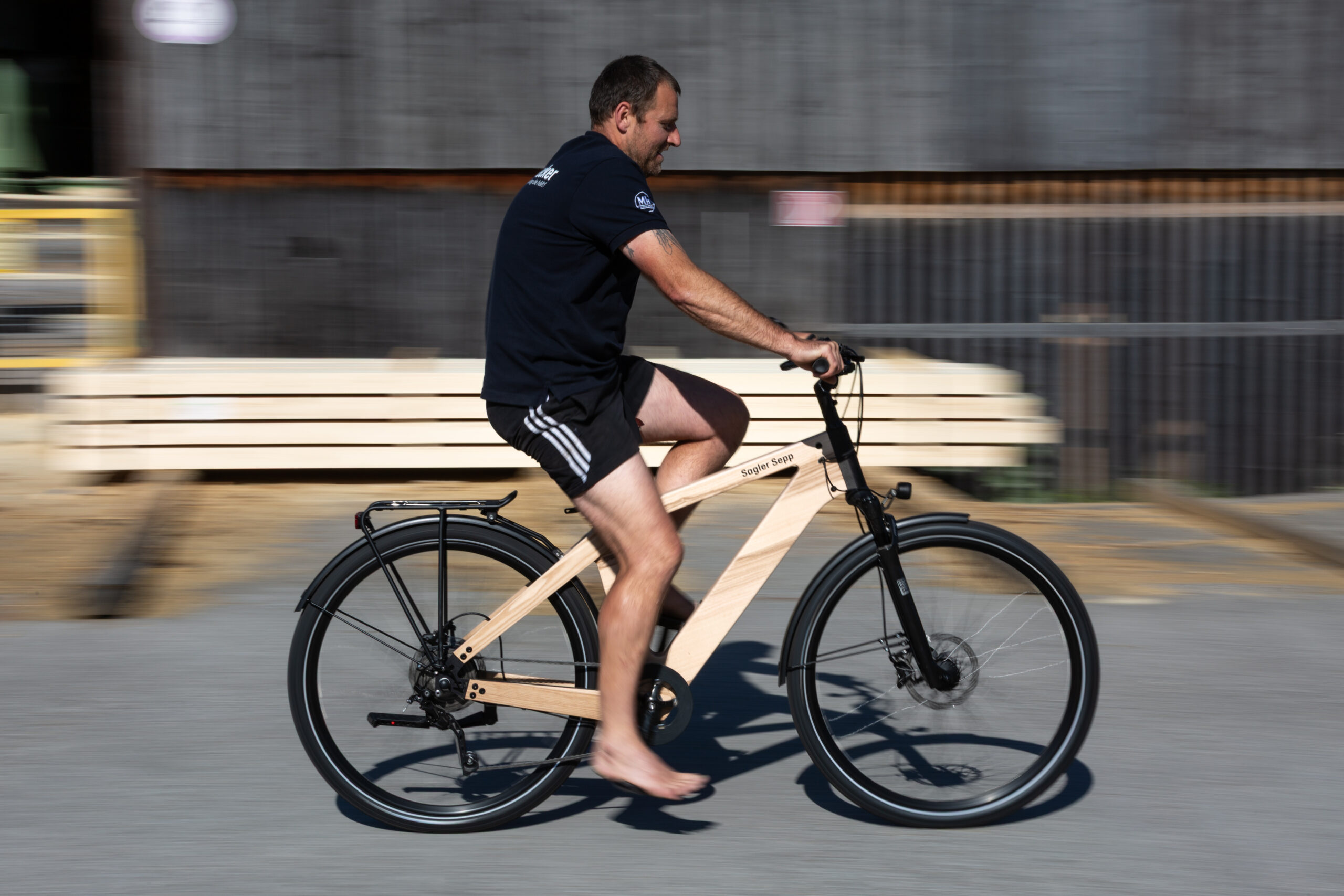 Ein „special moment“: Der „Esel“ – das legendäre Holzrad vom Sepp, der seit Jahren barfuß zur Arbeit fährt. Ein echtes Original, das nicht nur uns, sondern auch die Kamera begeistert.