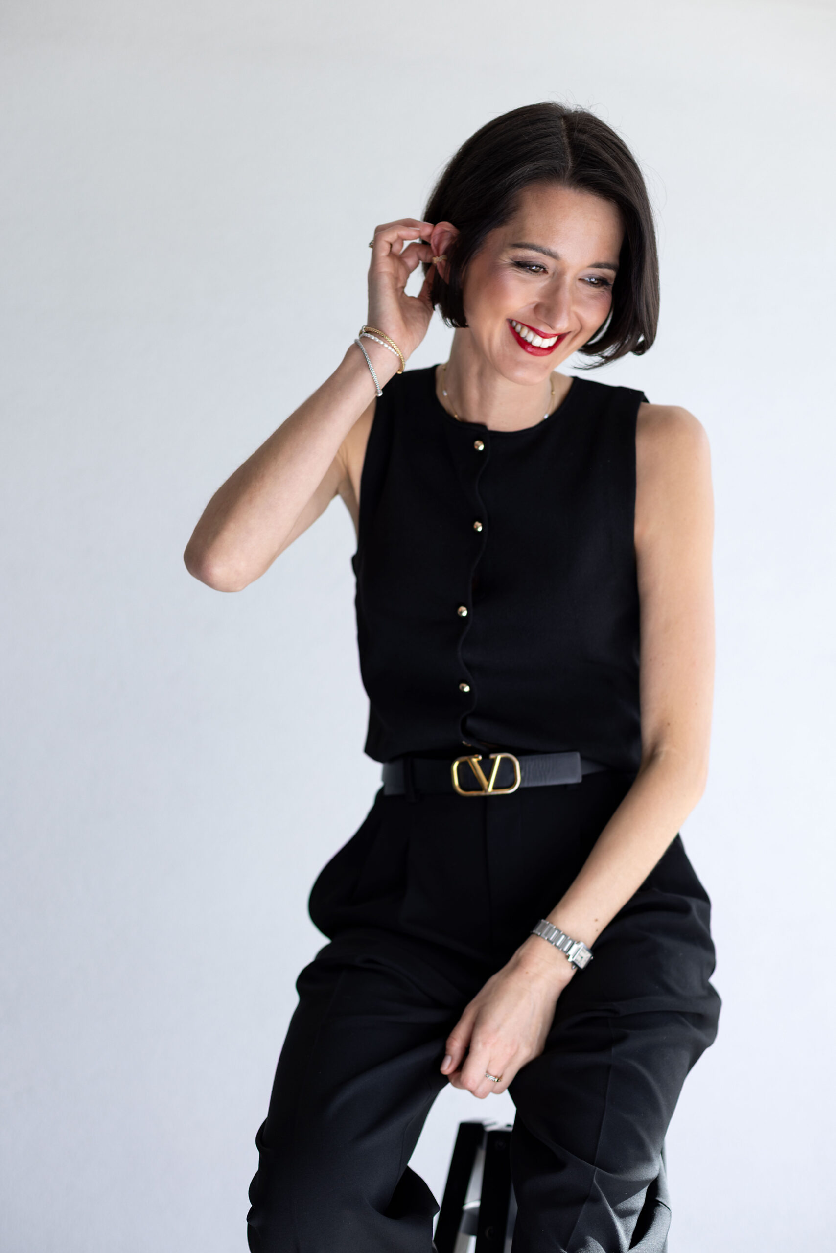 Danach wechseln wir das Setting. Dieses Mal steht Christina, eine Kundin im Mittelpunkt – mit all ihrer Persönlichkeit. Carmen schafft es, dass sie sich sofort wohlfühlt. Keine Pose wirkt gestellt, kein Lächeln gezwungen. Wir arbeiten mit Dauerlicht, um jede Nuance ihres Ausdrucks einzufangen. Und wieder kein Filter – denn Ehrlichkeit ist der schönste Filter.